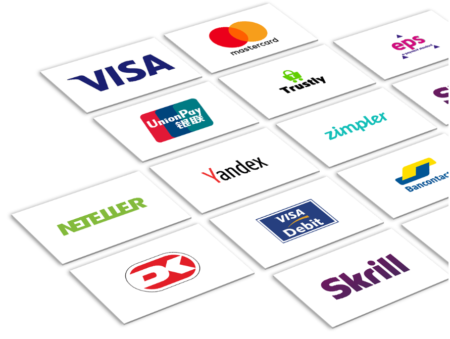 güvenilir ortaklar aracılığıyla çok çeşitli yerel ve uluslararası ödeme çözümlerine giriş yapabilir ve böylece ödeme portföyünüzü hedef bölgelerinize göre yerelleştirebilirsiniz.
