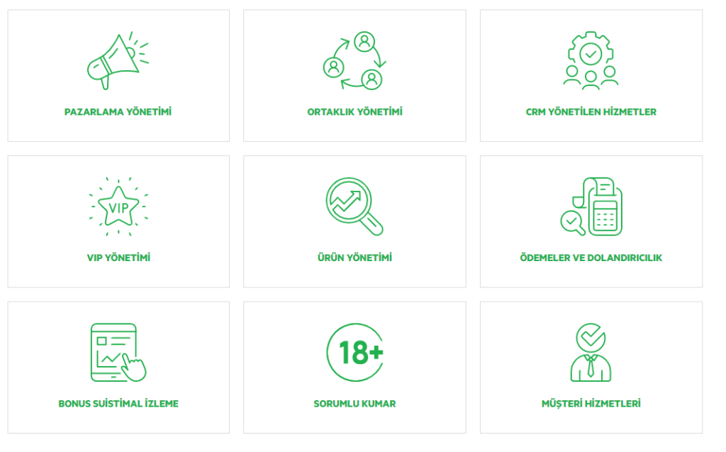 Satın alma ve elde tutma pazarlamasından sorumlu oyun ve ödeme yönetimine kadar, yönetim ekiplerinize sorunsuz, şeffaf ve uyumlu operasyonlar sağlayarak destek sağlıyoruz.Tıpkı ürünlerimiz gibi, Yönetilen Hizmetler çözümümüz de modüler bir şekilde tasarlanmıştır: size her konuda veya yalnızca belirli bir alanda yardımcı olabiliriz.